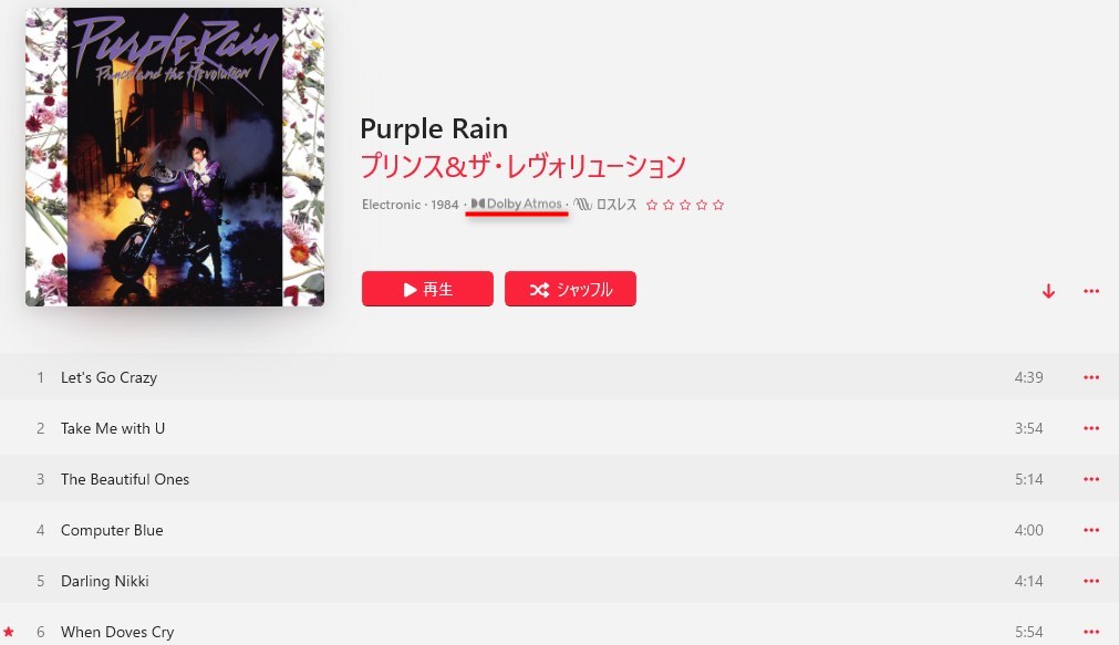 こちらのアルバムは空間オーディオ形式のアルバムが用意されています。