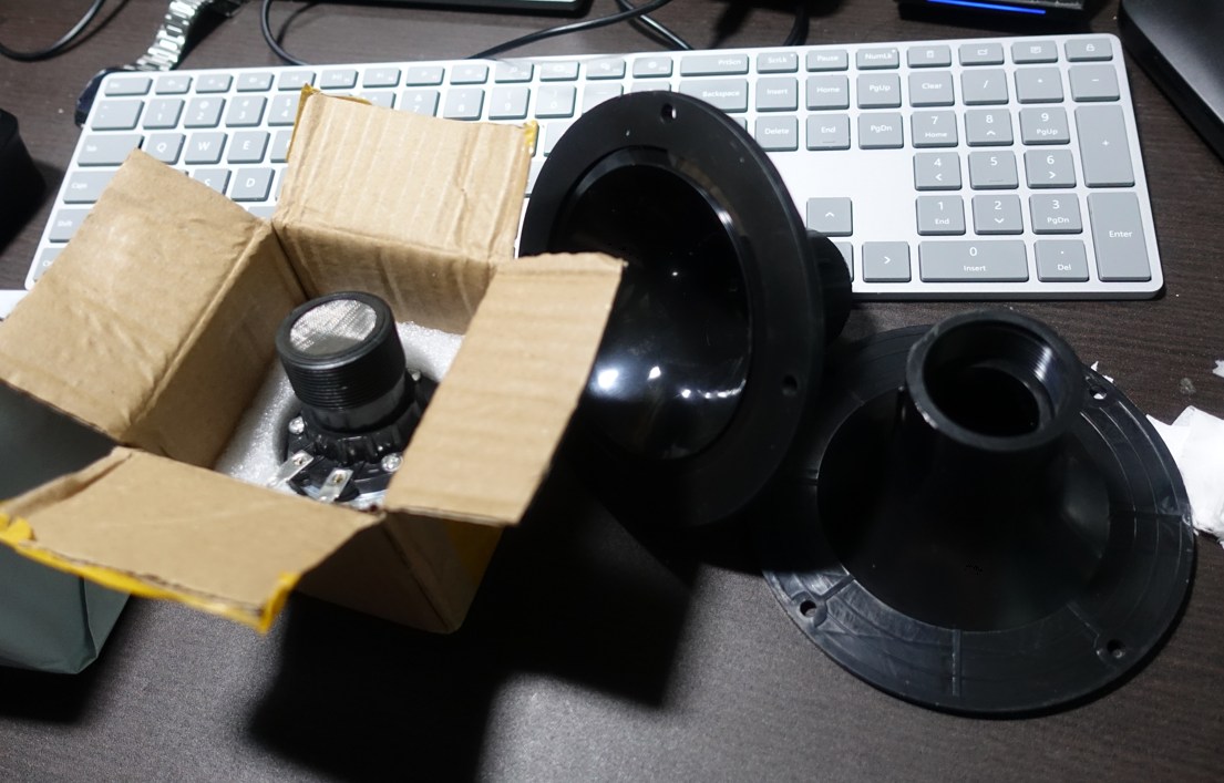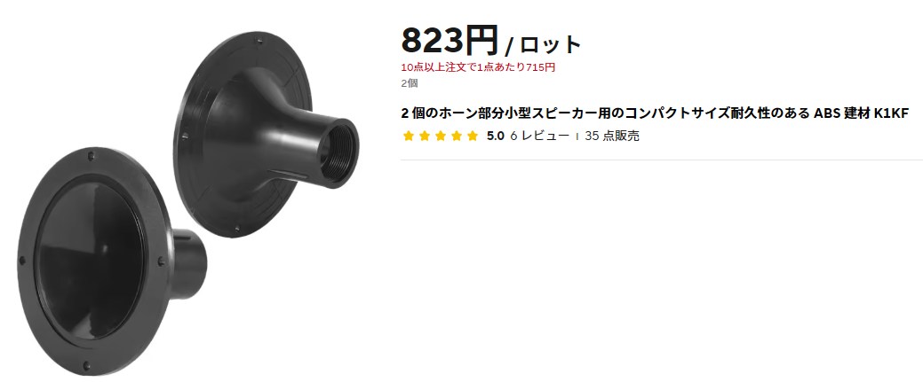 ドライバーの出口サイズが33mmと書いてて、AliExpressで関連出でてくるホーンの取り付け口が34mmのものばかりだったので躊躇してた。