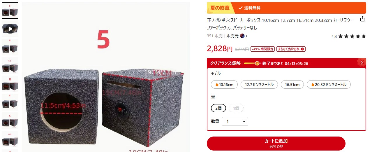 AliExpressのサイトで 8インチ エンクロージャー で探すと見つけられる