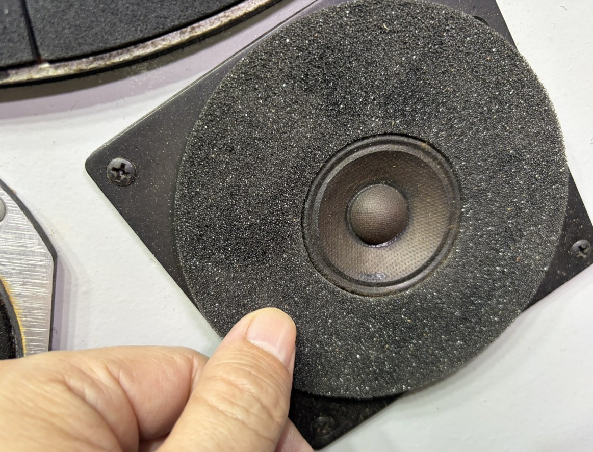 経年劣化でこのツイーターまわりの吸音スポンジがボロボロになってる中古品をよく見るけど、新品のスポンジも売ってるでの自分でメンテ出来る人にはボロいのでもいいんでしょうね。