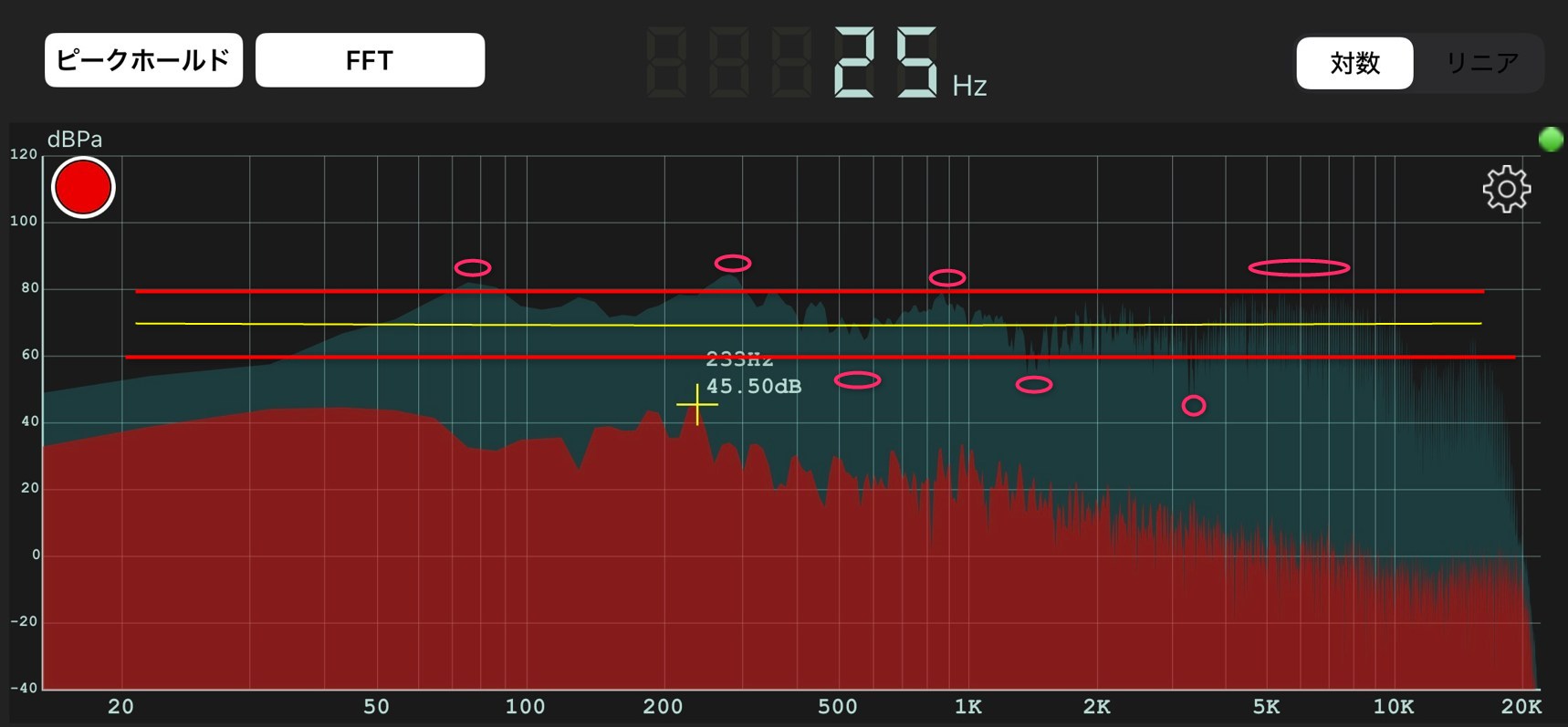 • 下は35Hzから反応40Hzで立ち上がり80Hzあたりにピーク