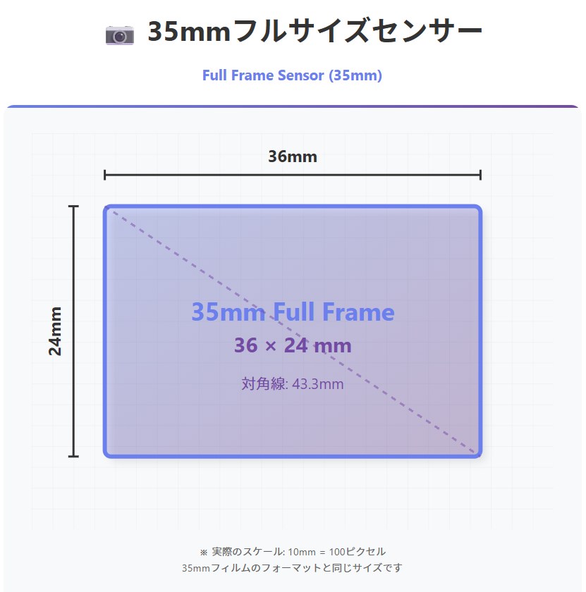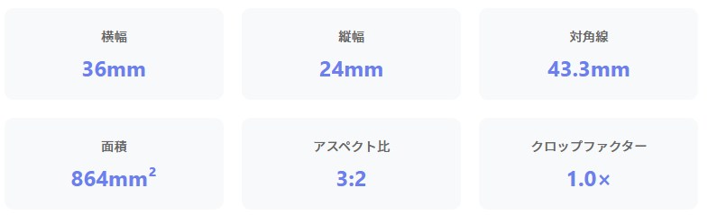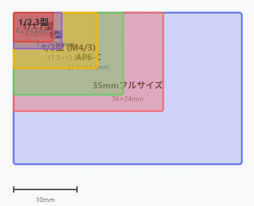 | センサーサイズ | 物理サイズ(mm) | 面積比率 | 主な用途 |
