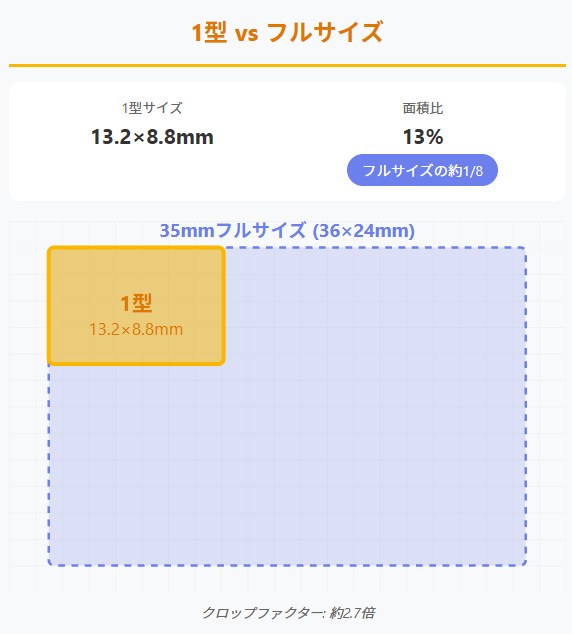 | 1型(1インチ) | 13.2×8.8 | 4倍 | 高級コンパクト |