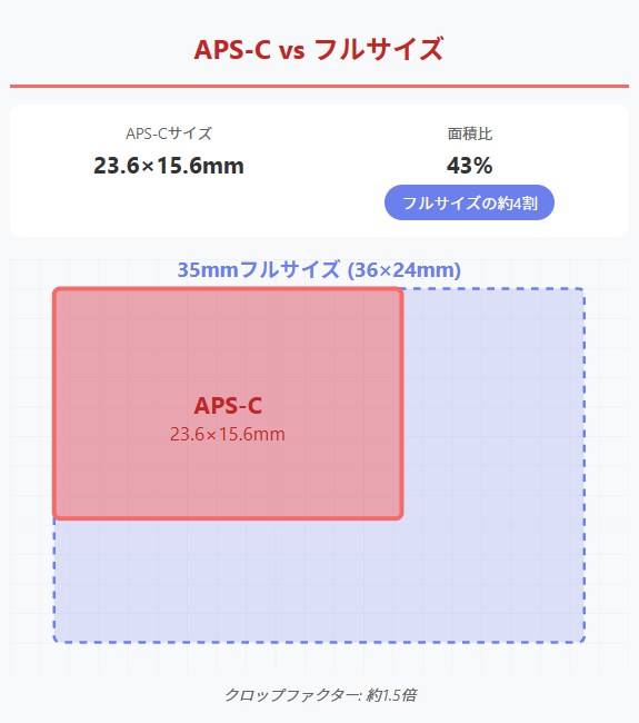 | APS-C | 23.6×15.6 | 13倍 | ミラーレス・一眼レフ |
