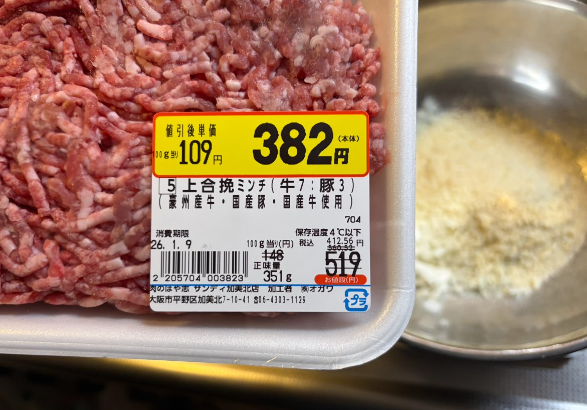 棚にあるミンチで一番安いのを選んだだけ