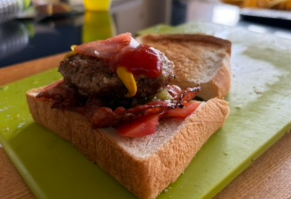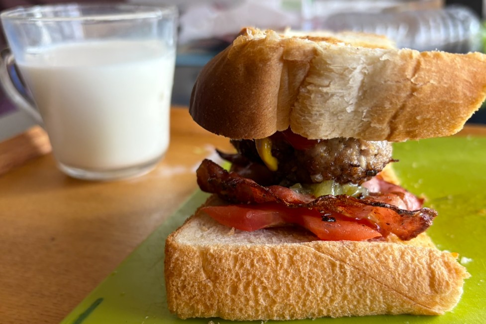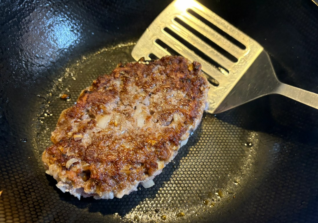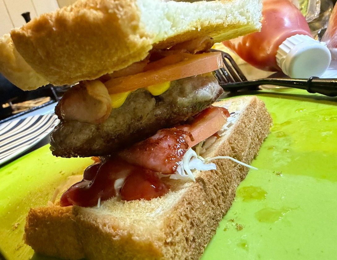 シンプルハンバーグゆえに、食パンバーガーにしたとき、格別に美味しいです。