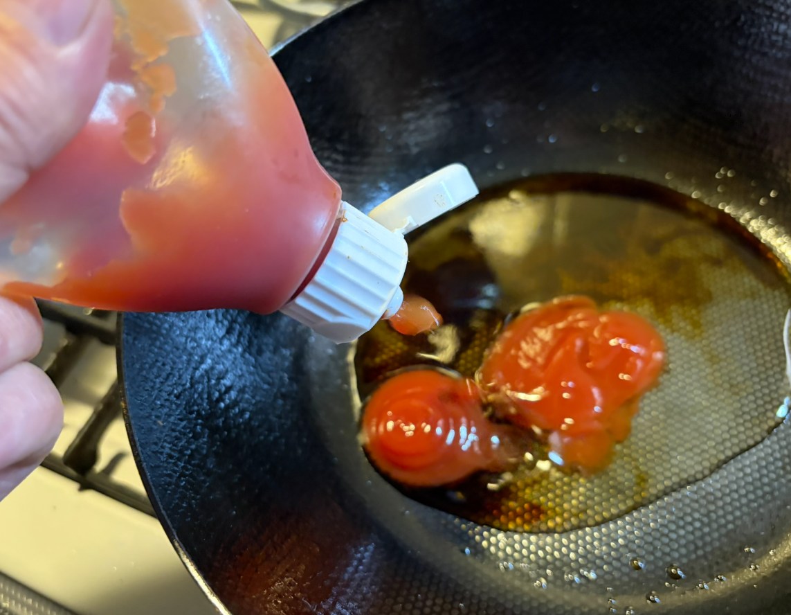 (できればケチャップは鉄フライパンに入れてはいけません)
