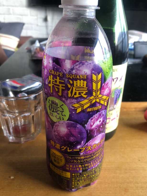 数日経過して苦みが嫌だなと思ったら、この三ツ矢サイダーの特濃グレープスカッシュで割るといい