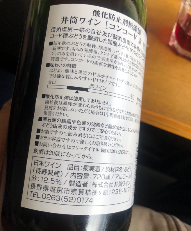 井筒ワインのコンコード甘口は