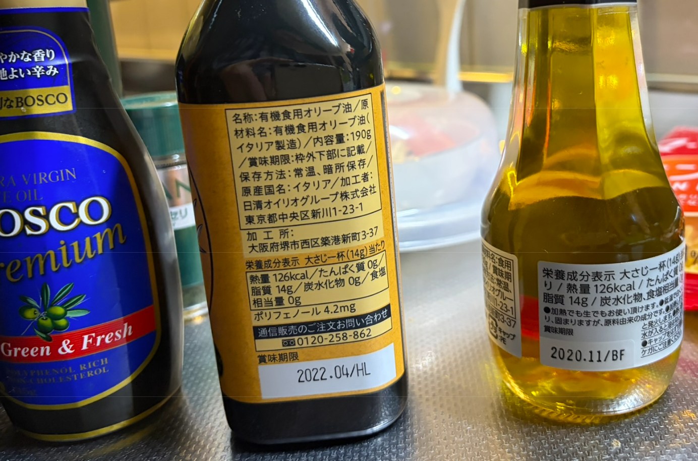 オリーブオイルは「生鮮食品(ジュース)」と同じだと考えてください。