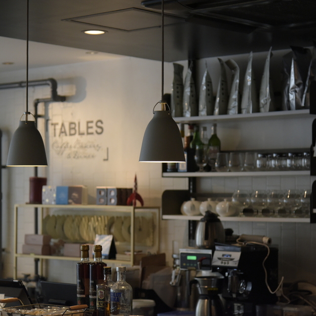 南堀江のタブレスコーヒーには全部で4台のピュアモルトスピーカーが天井から吊り下げられています。