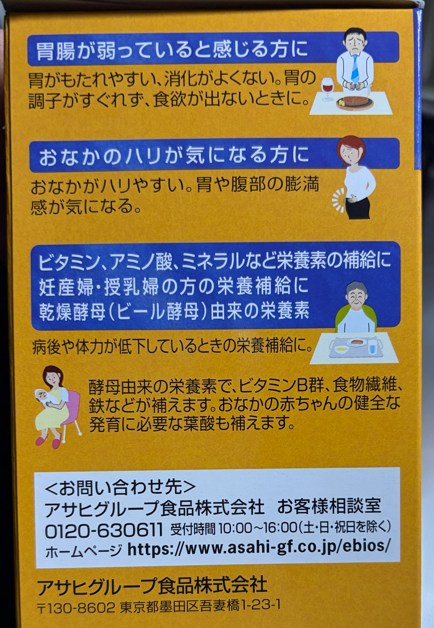 ビール酵母には消化機能を助け、乳酸菌など有用菌を増やす作用があり、胃もたれ、消化不良、おなかのハリなどの症状に効きます。
