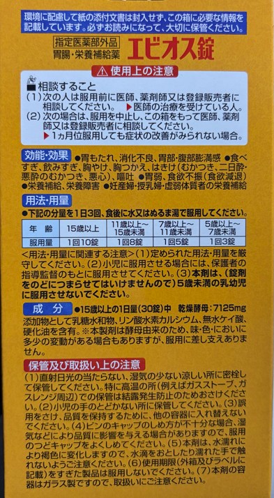 指定医薬部外品 胃腸・栄養補給薬 エビオス錠