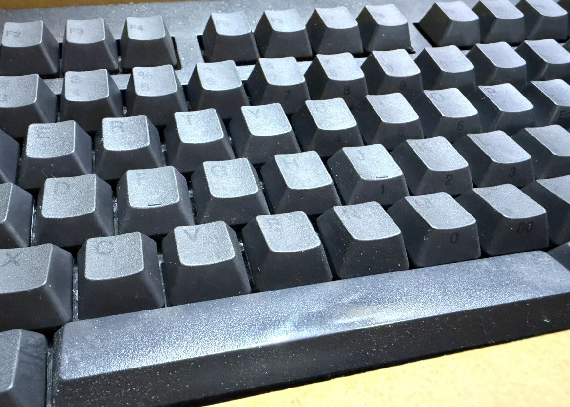 使い続けていたスペースバーとバックスペースキーなんかはテカテカにテカリが出てる。