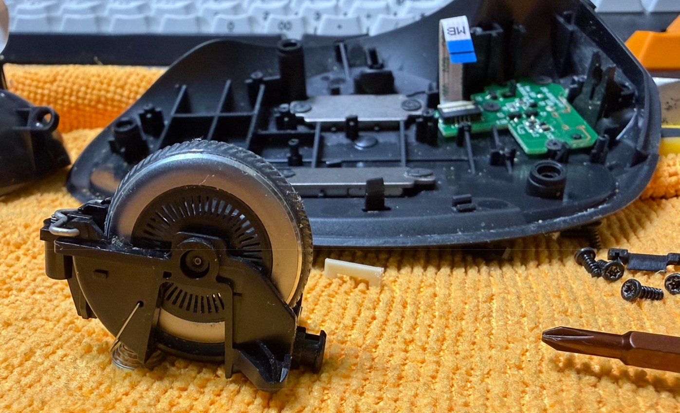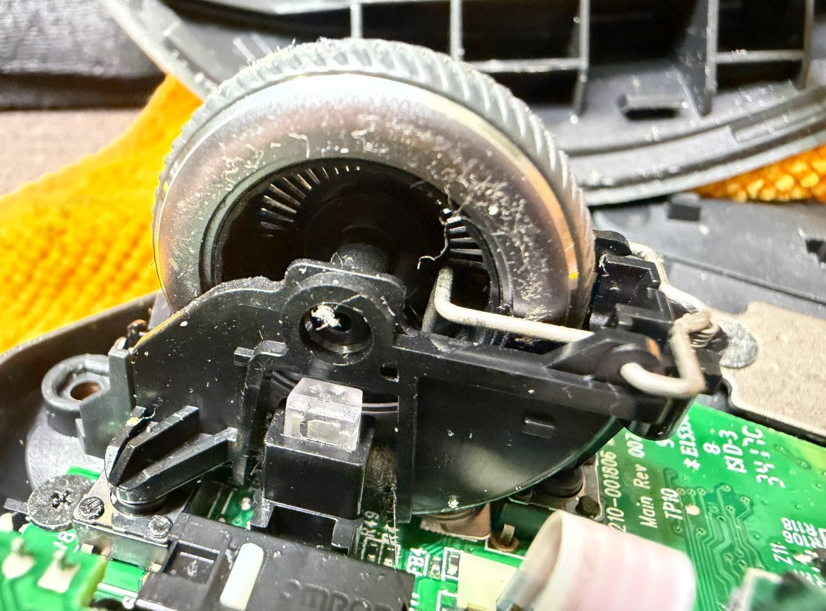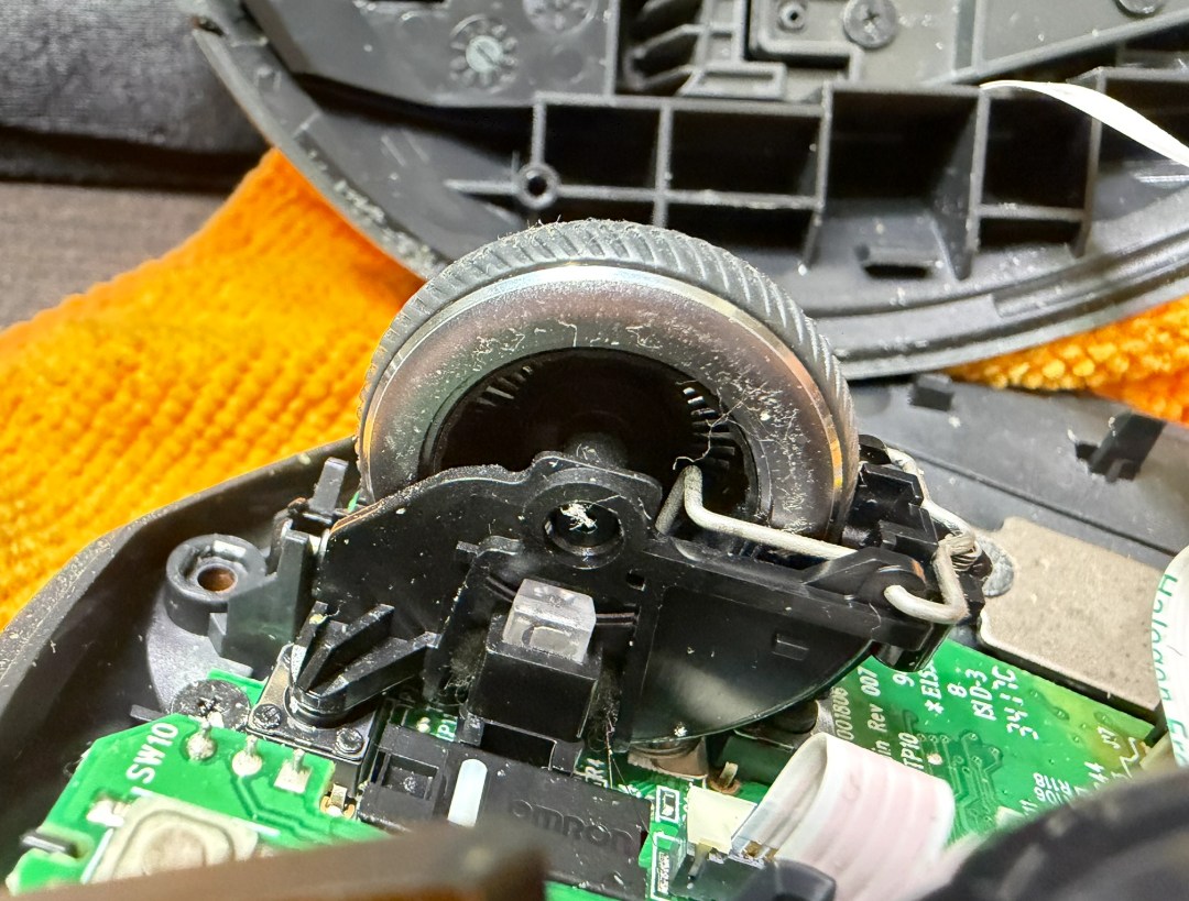 とりはずしたスクロールホイールをくるくる回していると