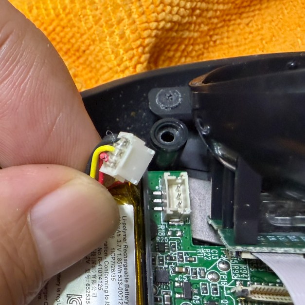 充電用バッテリーのコネクターを基盤からはずす