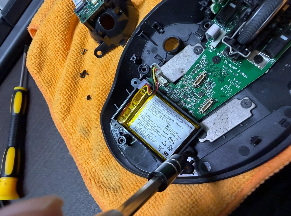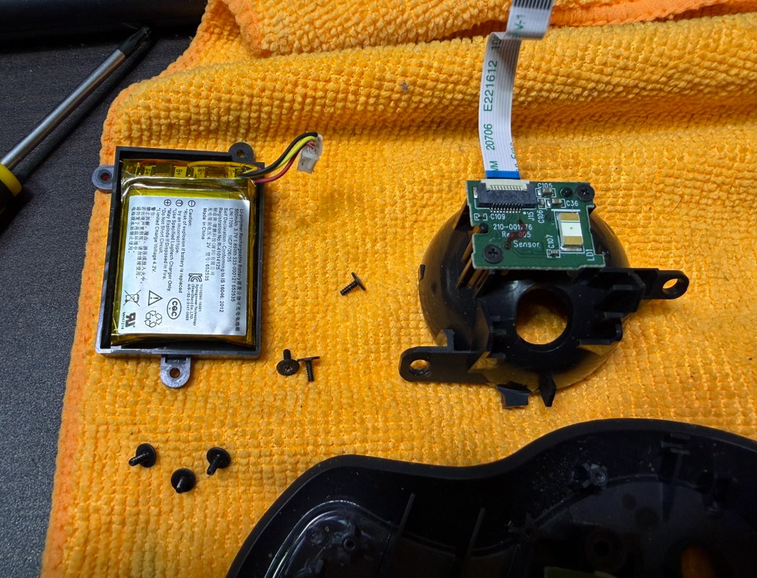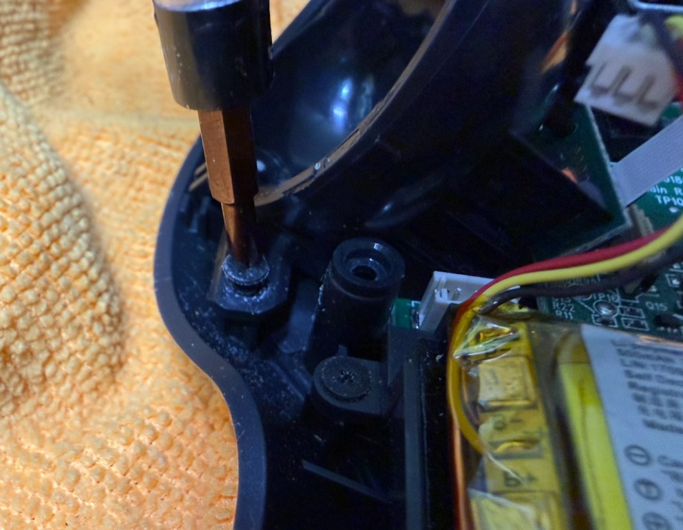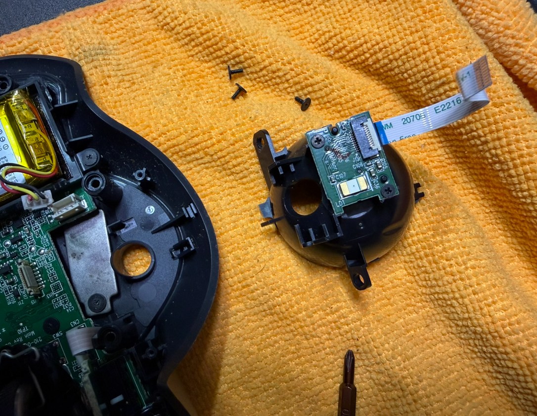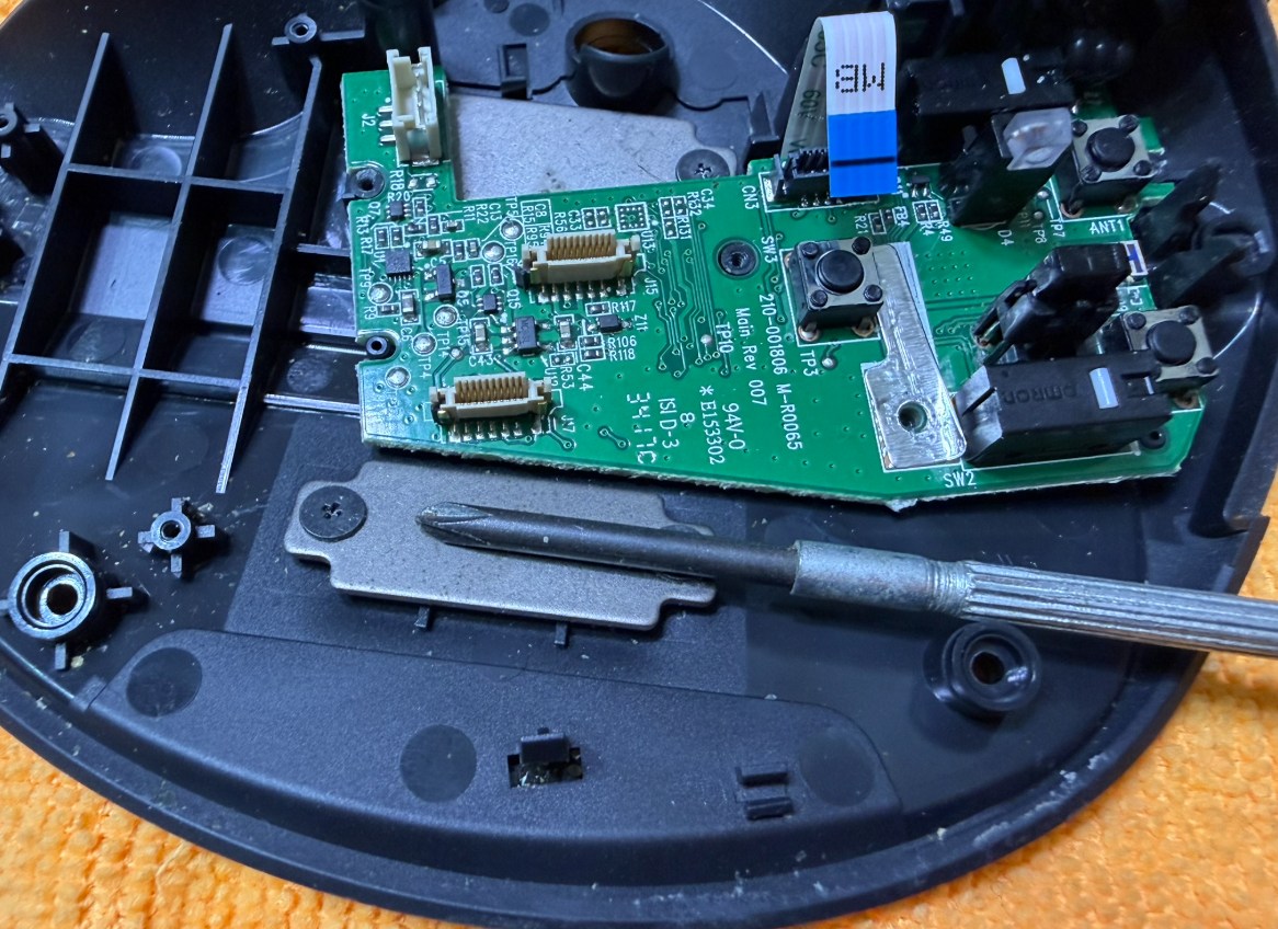 バッテリー外す前にトラックボールの玉を支える部分を外す必要がある