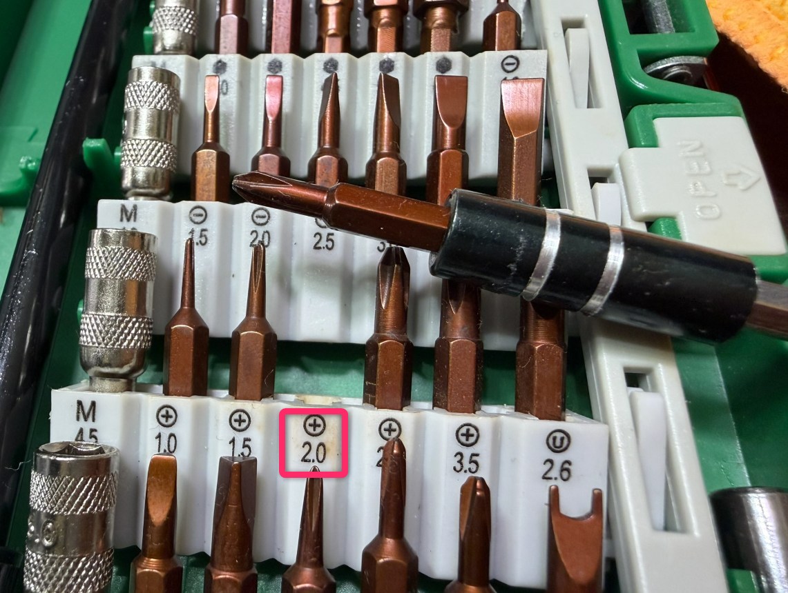 小さいネジなので磁力付きのドライバーだと作業しやすい