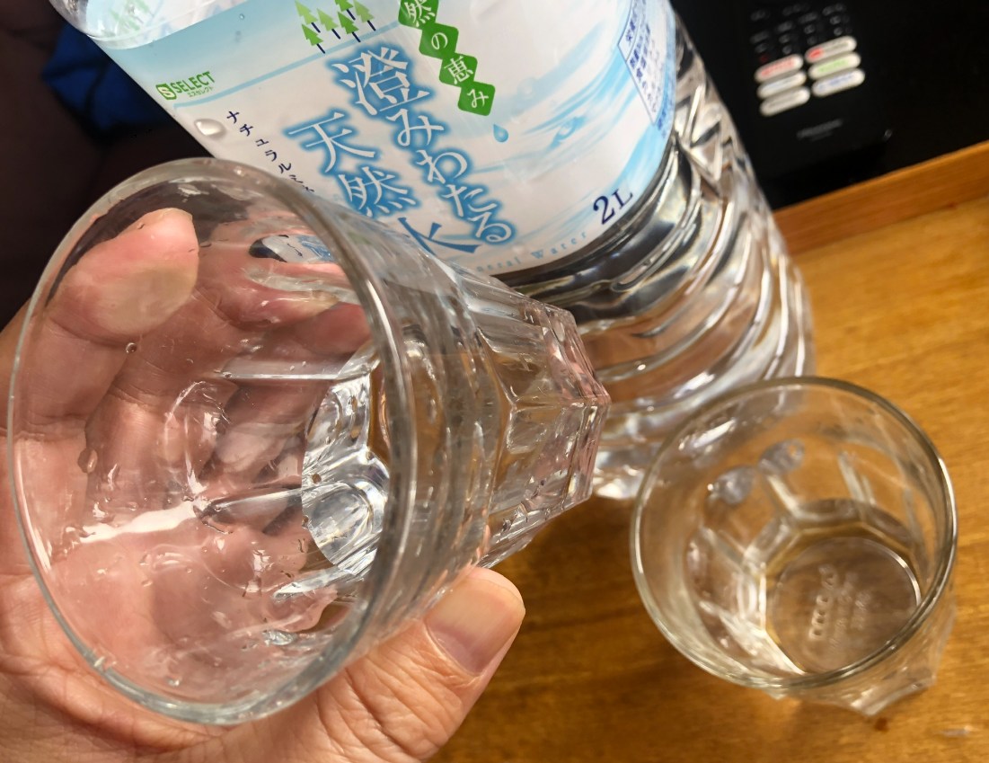 まずグラスの水を手にとって