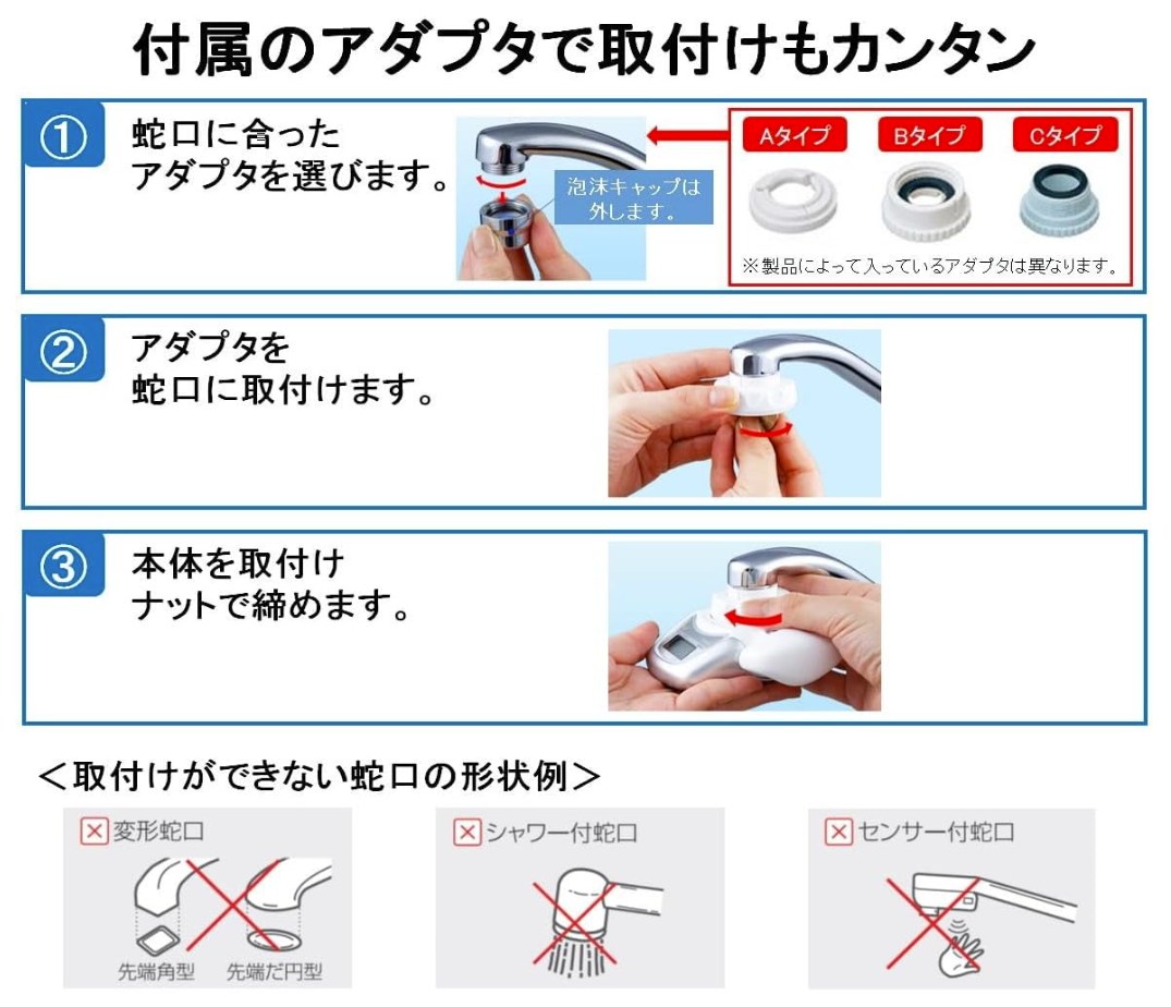 うちの場合はBタイプのアダプターを蛇口に取り付け