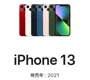 | iPhone 13 | 2021年9月24日 | 98,800円〜134,800円 | Apple A15 Bionic | 6.1インチ 有機EL | 12MP×2 / 12MP | 128GB / 256GB / 512GB | バッテリー持続時間向上 |