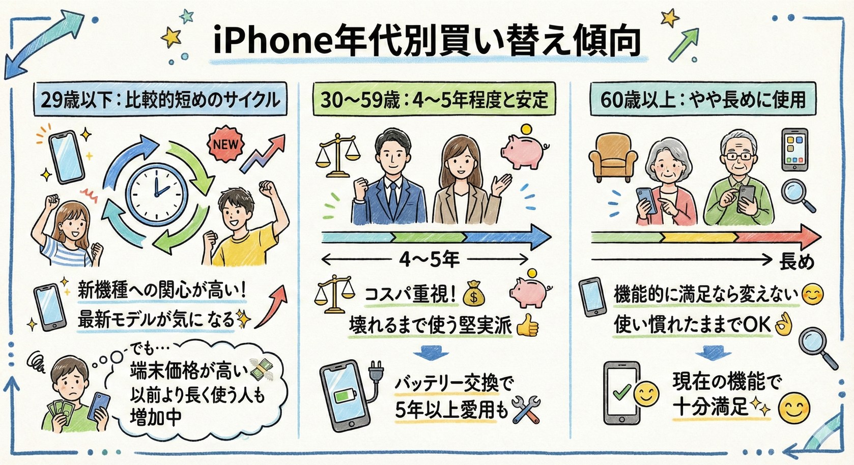 - 29歳以下:比較的短めのサイクル(新機種への関心が高い)