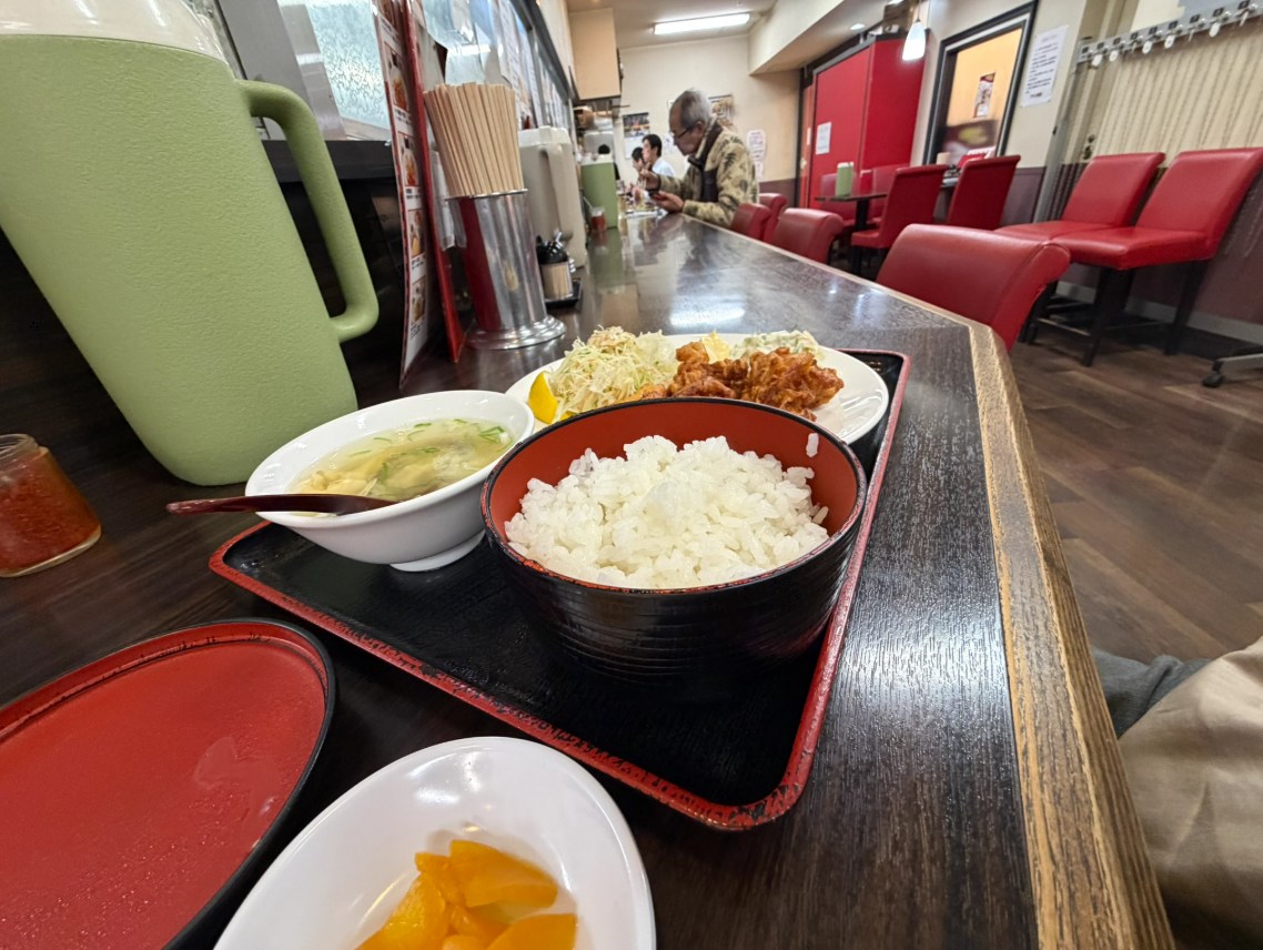 定食の唐揚げは一口サイズで食べやすかった マヨネーズとサラダ添えが美味しい