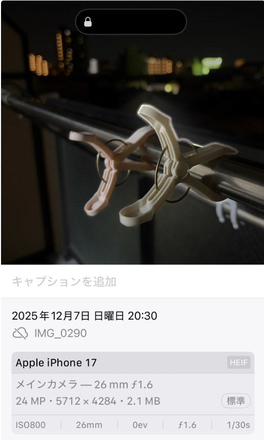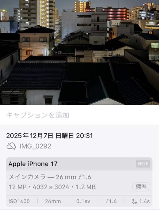 先日のiPhone17Proの写真同様、iPhone17カメラで撮影した写真の雰囲気を残しておきます。